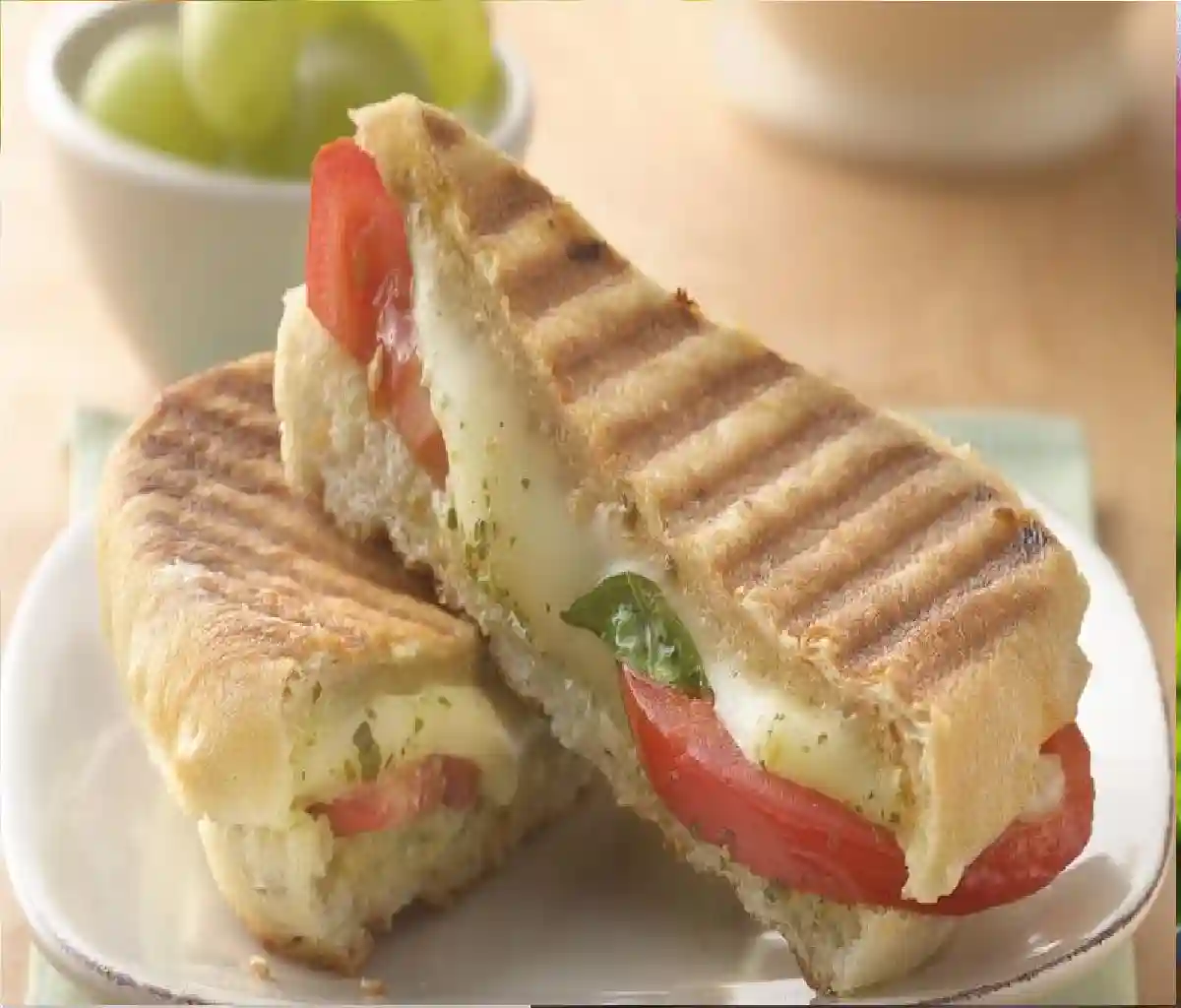 Ham and cheese panini, Tomatoes, Pesto