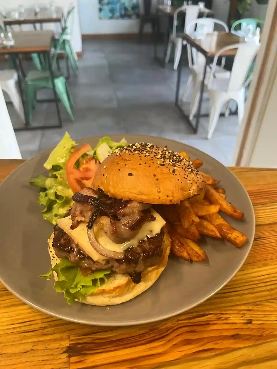 Angus steak (EU), Emmental Cheese, Artisan Bread, Home Fries