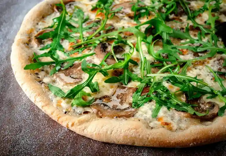 White sauce, Fontina cheese, Mozzarella, Parmigiano, Truffle sauce, olives, Aragula