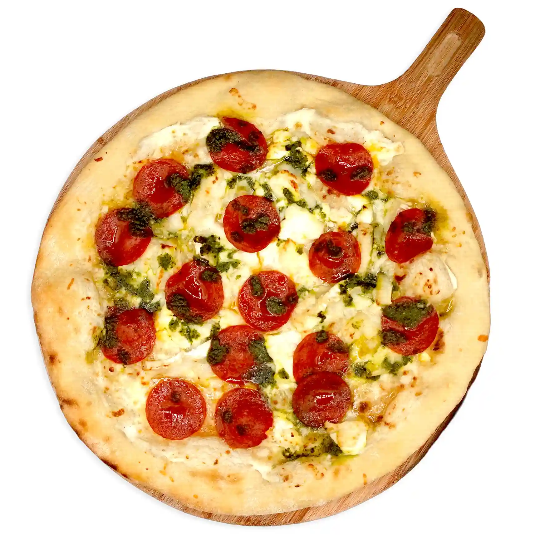 Fresh cream, Mozza, Emmental, Goat cheese, Honey, Pepperoni, Pesto