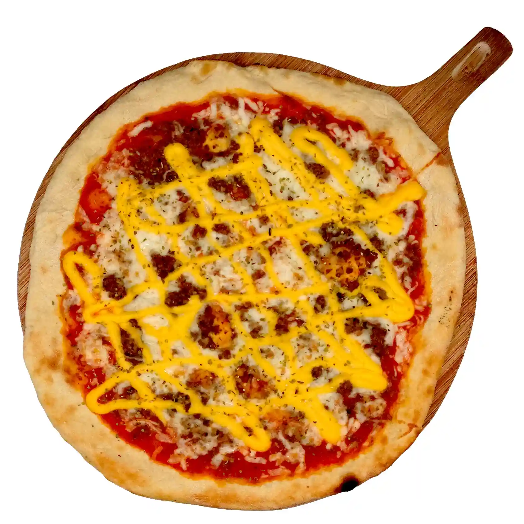 Tomato sauce, Mozza, Emmental, Minced meat, Chedda