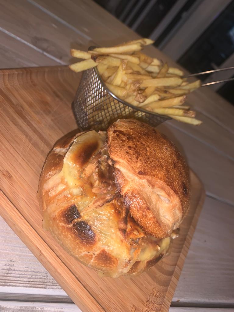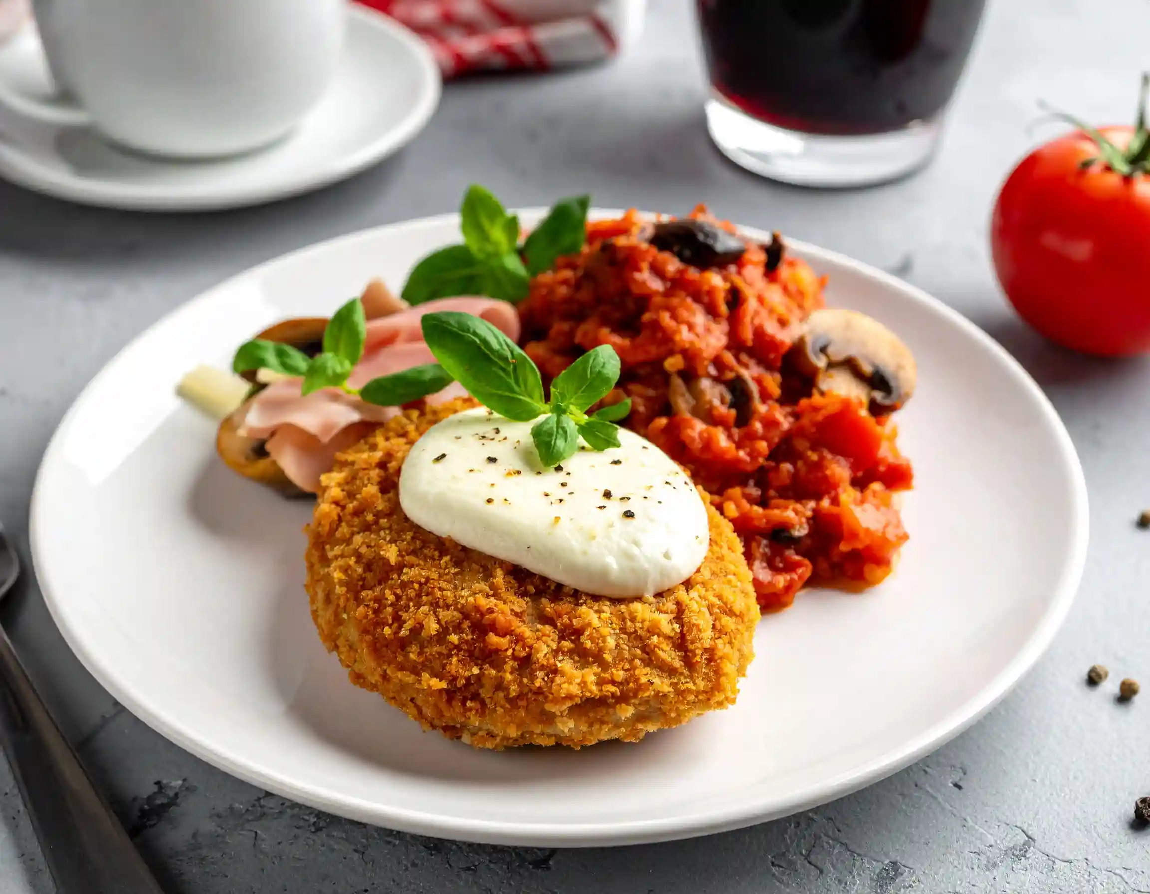 Chicken cutlet, Tomato sauce, Reblochon, Raw ham