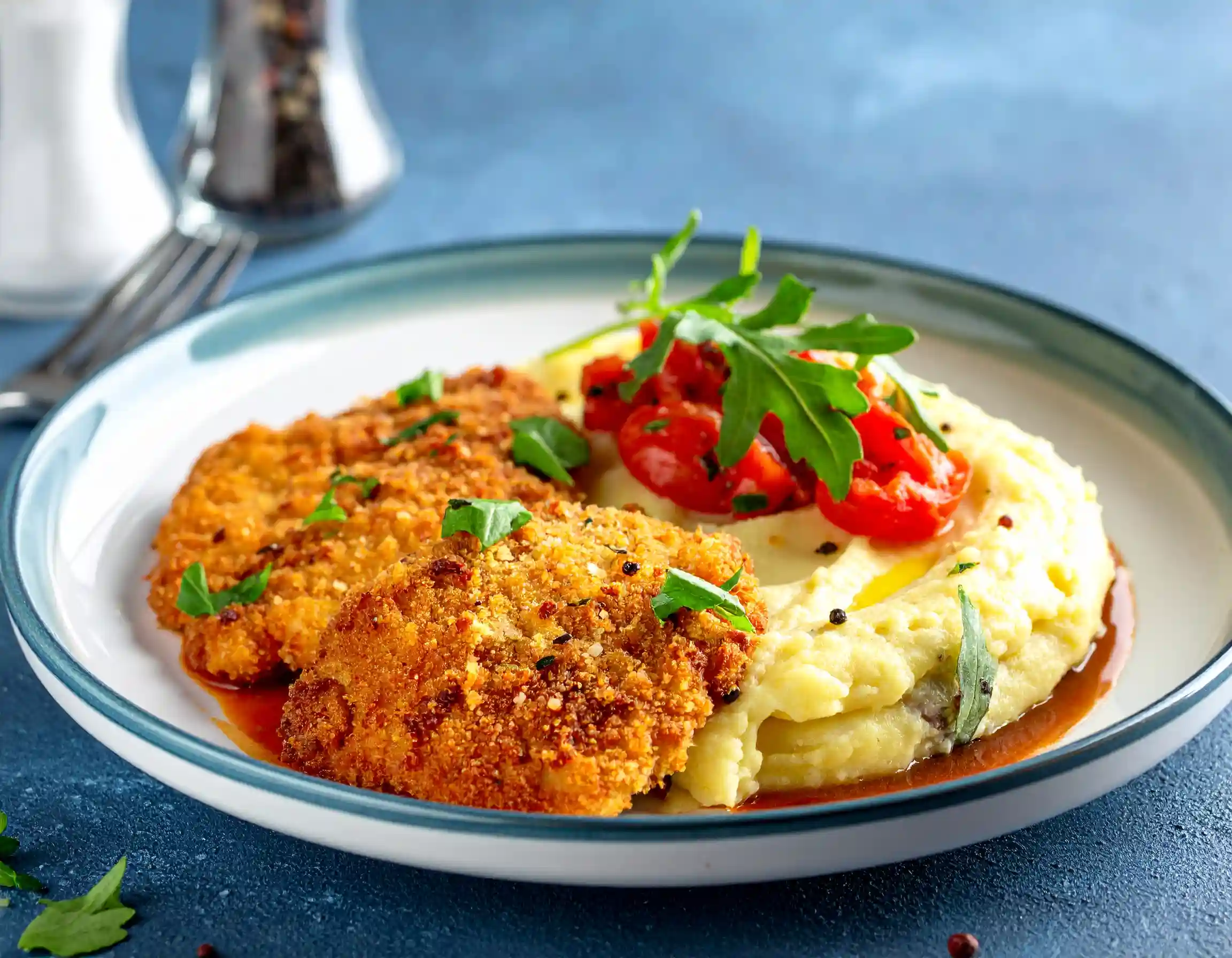 Chicken cutlet, Cream, Onions, Ham, Gor…