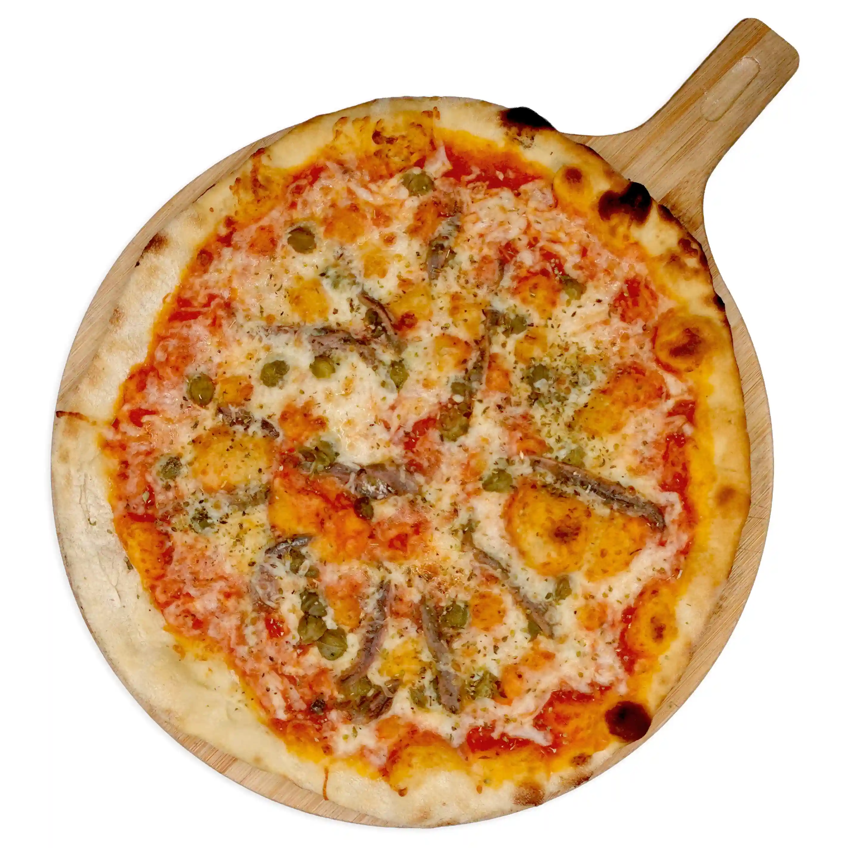 Tomato sauce, Mozza, Emmental, Anchovie…
