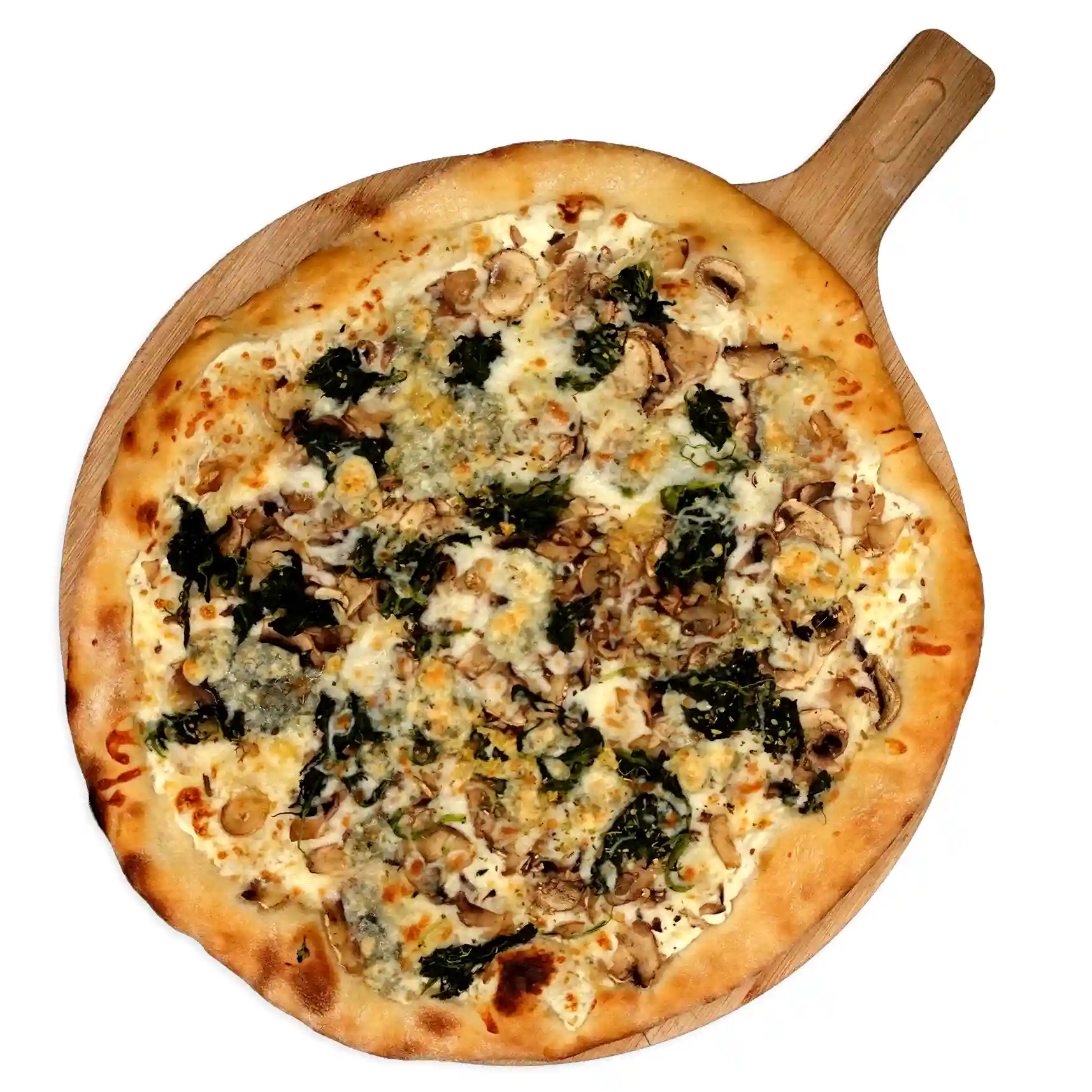 Fresh cream, Mozza, Emmental, Mushrooms, Gorgonzola, Spinach, Garlic, Honey