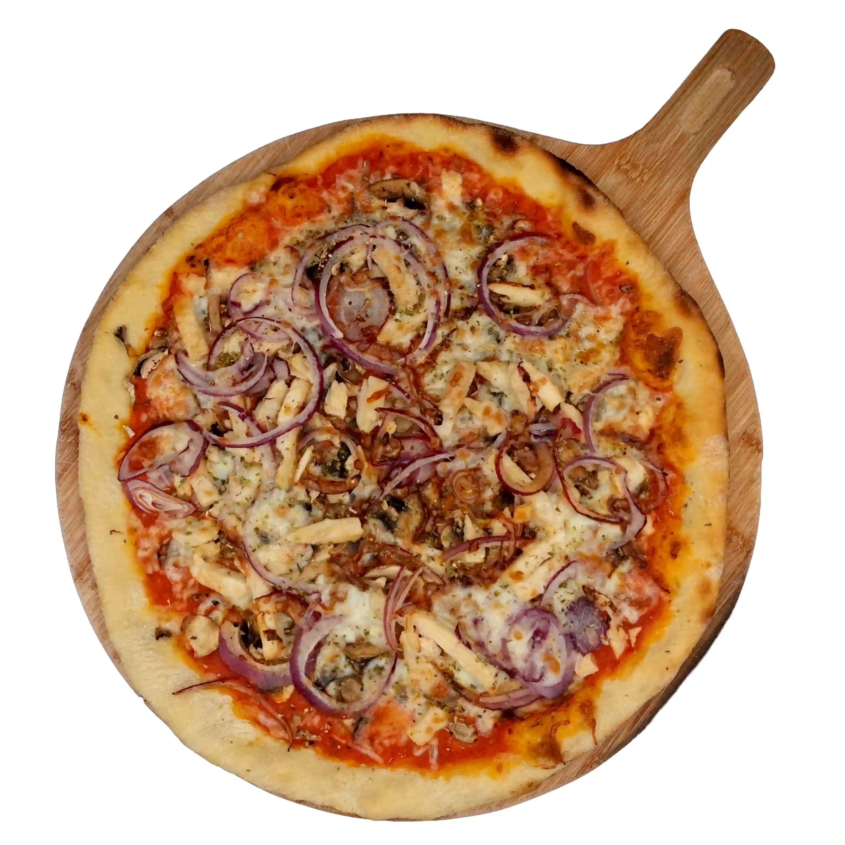 Tomato sauce, Mozza, Emmental, Chicken, Mushrooms, Onions
