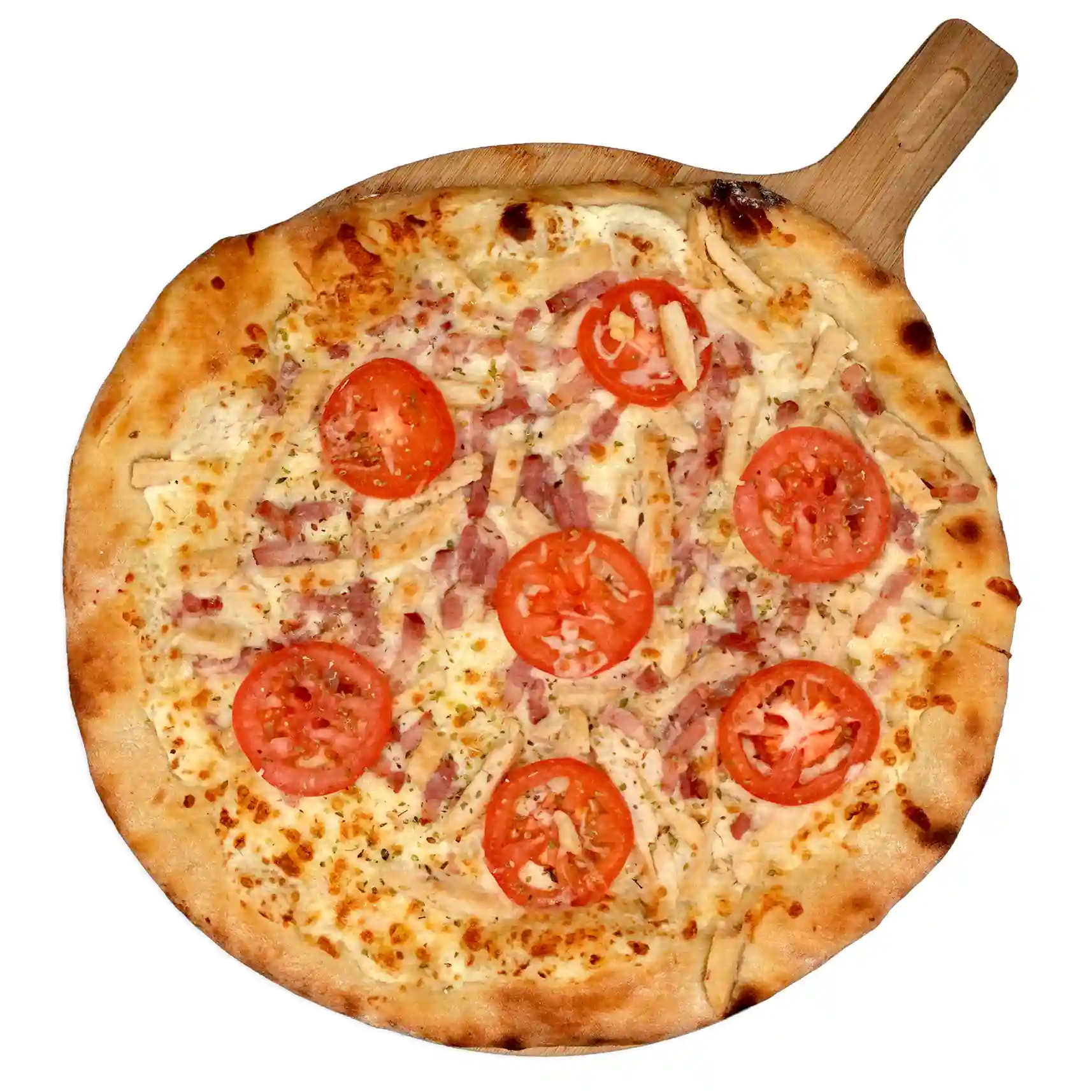 Fresh cream, Mozza, Emmental, Chicken, Fresh tomatoes, Bacon
