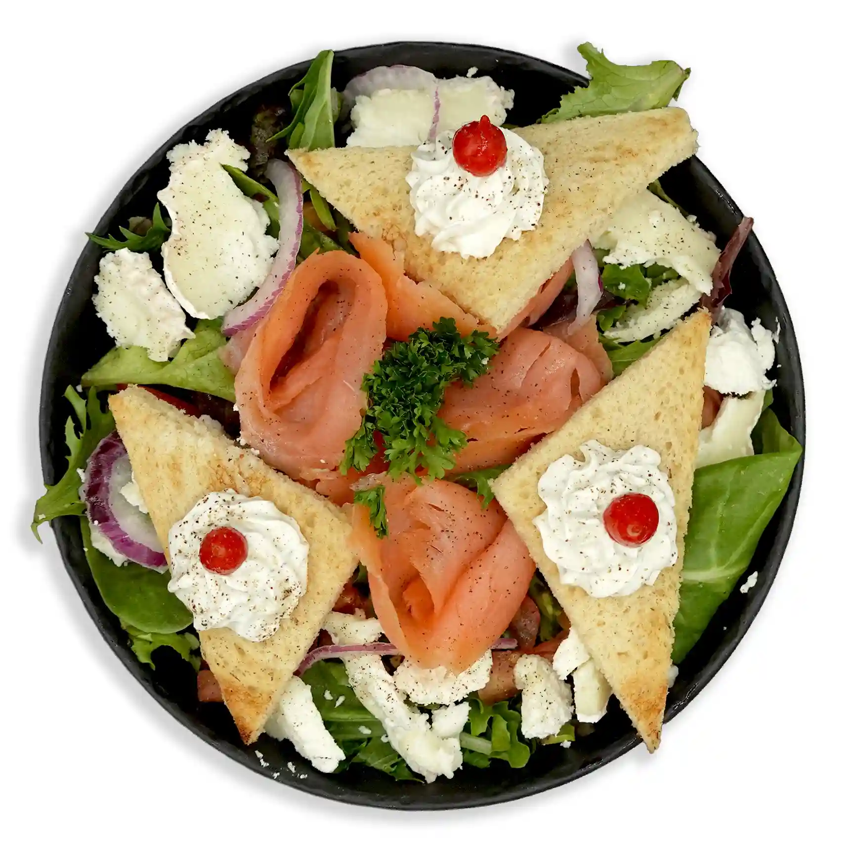 Salad, Tomato, Boursin cheese, Smoked salmon