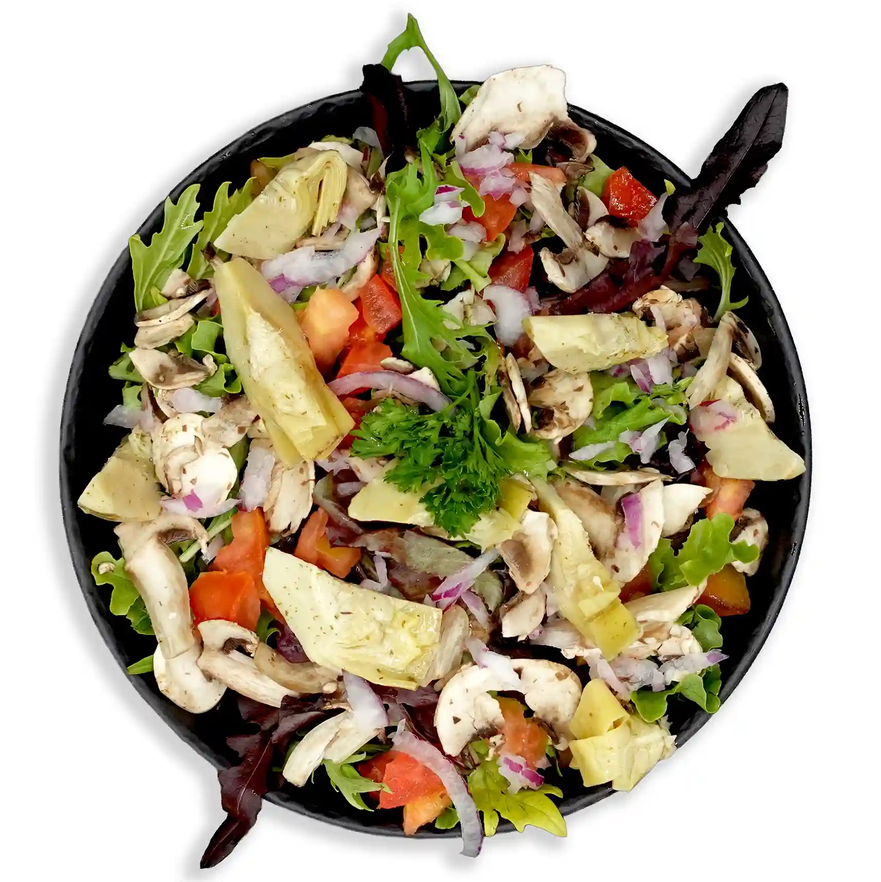 Mesclun, Cherry tomatoes, Echalottes, Garlic, Onions, Pepper drops, Artichoke, Mushrooms, Pesto