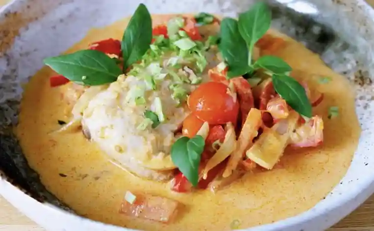 Passion fruit sauce, Rice, Vegetables